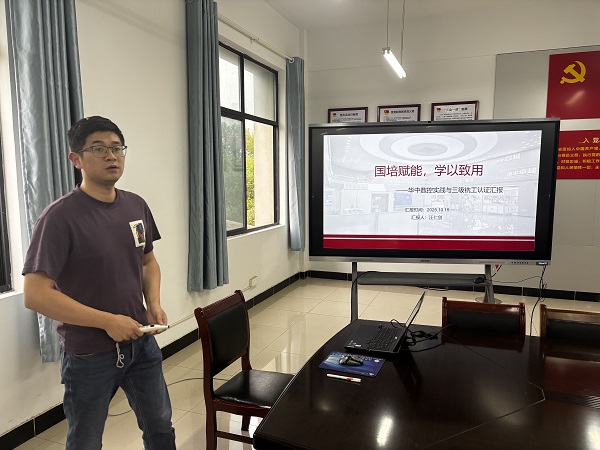 邱舒霞老师(智能制造单元集成应用项目)围绕“1+X 证书制度”,汇报种子教师培训的核心内容与教学适配建议;