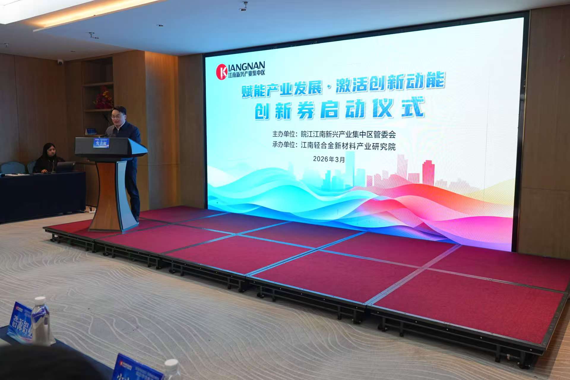 集中区党工委副书记、管委会副主任张典出席仪式并讲话。他指出,创新券是助力企业科技创新、激发产业活力的重要政策工具,各方要协同发力、高效落实。企业要勇担创新主体责任,用足用好政策红利,切实转化为创新成果与发展实效;江南轻合金产业研究院要履行好承办职责,优化服务流程、提升服务效能;各高校院所要充分发挥人才与智力优势,聚焦产业需求开展技术研发、成果转化与人才培养,将科研优势转化为产业发展优势;各相关部门要强化统筹协调、做好服务保障,全力打造一流创新生态。